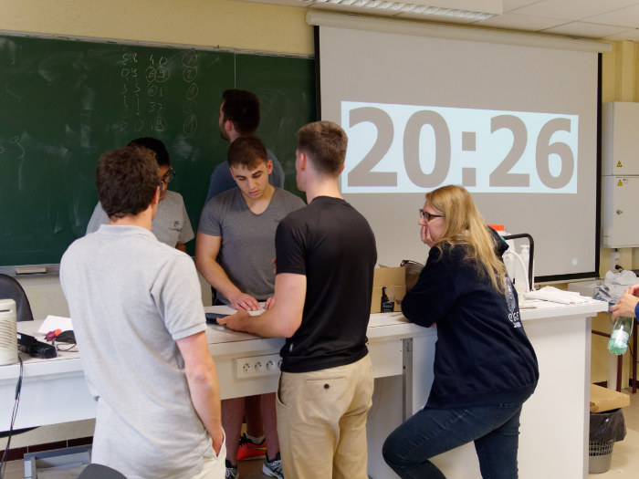 Un escape game didactique et pluridisciplinaire, mis en place par les enseignants. Des équipes de 10 étudiants étaient formées, mélangeant étudiants à orientation scientifique et étudiants à orientation économique. En moins de 40 min, les groupes ont dû faire face à : des énigmes logiques, des problèmes mathématiques, du cryptage informatique, des expériences physiques, des problèmes des sciences de l’ingénieur…