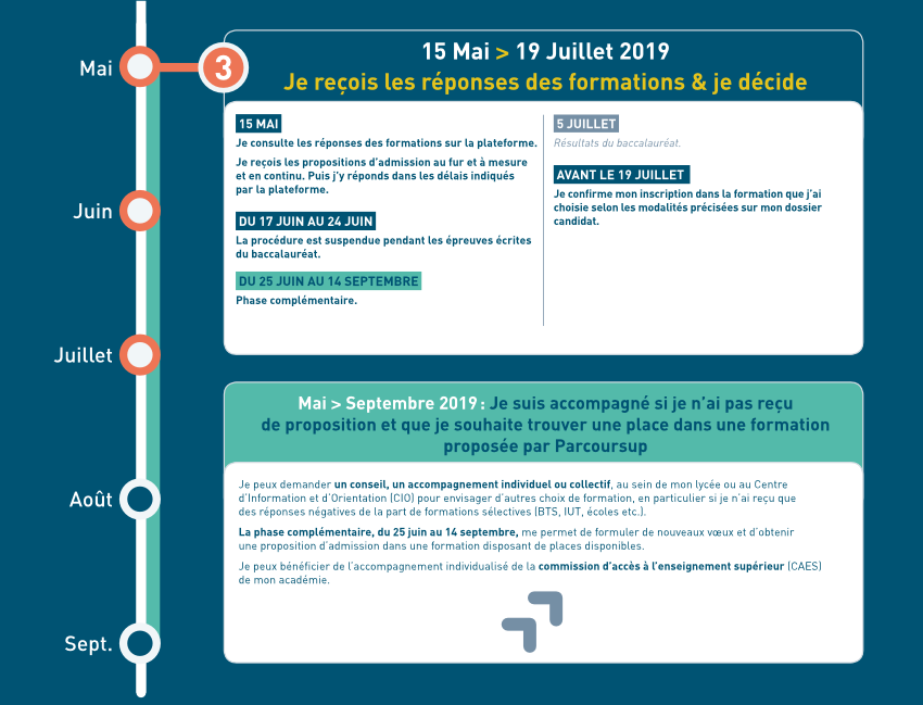 Ces vœux seront ensuite transmis aux établissements et nous les étudierons en temps voulu au sein des équipes pédagogiques sur la base des dossiers dématérialisés. Vous recevrez ensuite des réponses selon le calendrier Parcoursup.